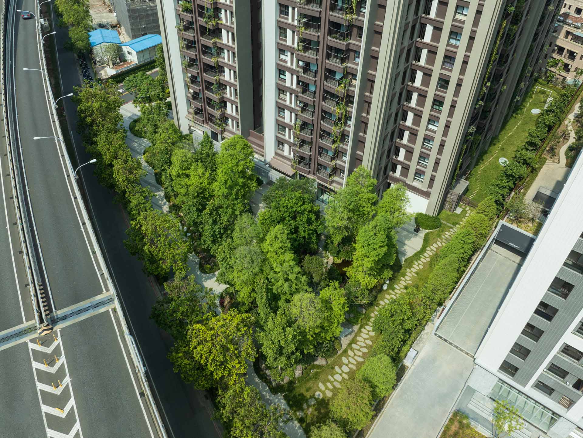林在城心之中,家在林的那一邊一樓建築入口採取隱約的轉折,讓花園成為回家的轉境春櫻的繽紛、秋紅的落羽松、池中的白雲,都會讓你流連所有的塵囂與煩躁,在你穿林而歸時早已被拋下