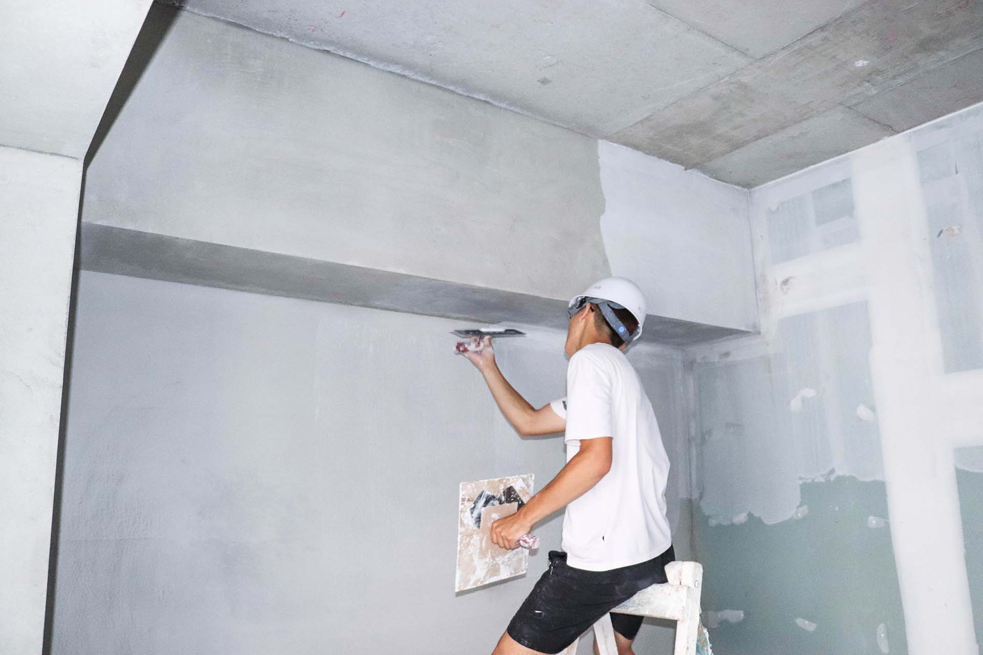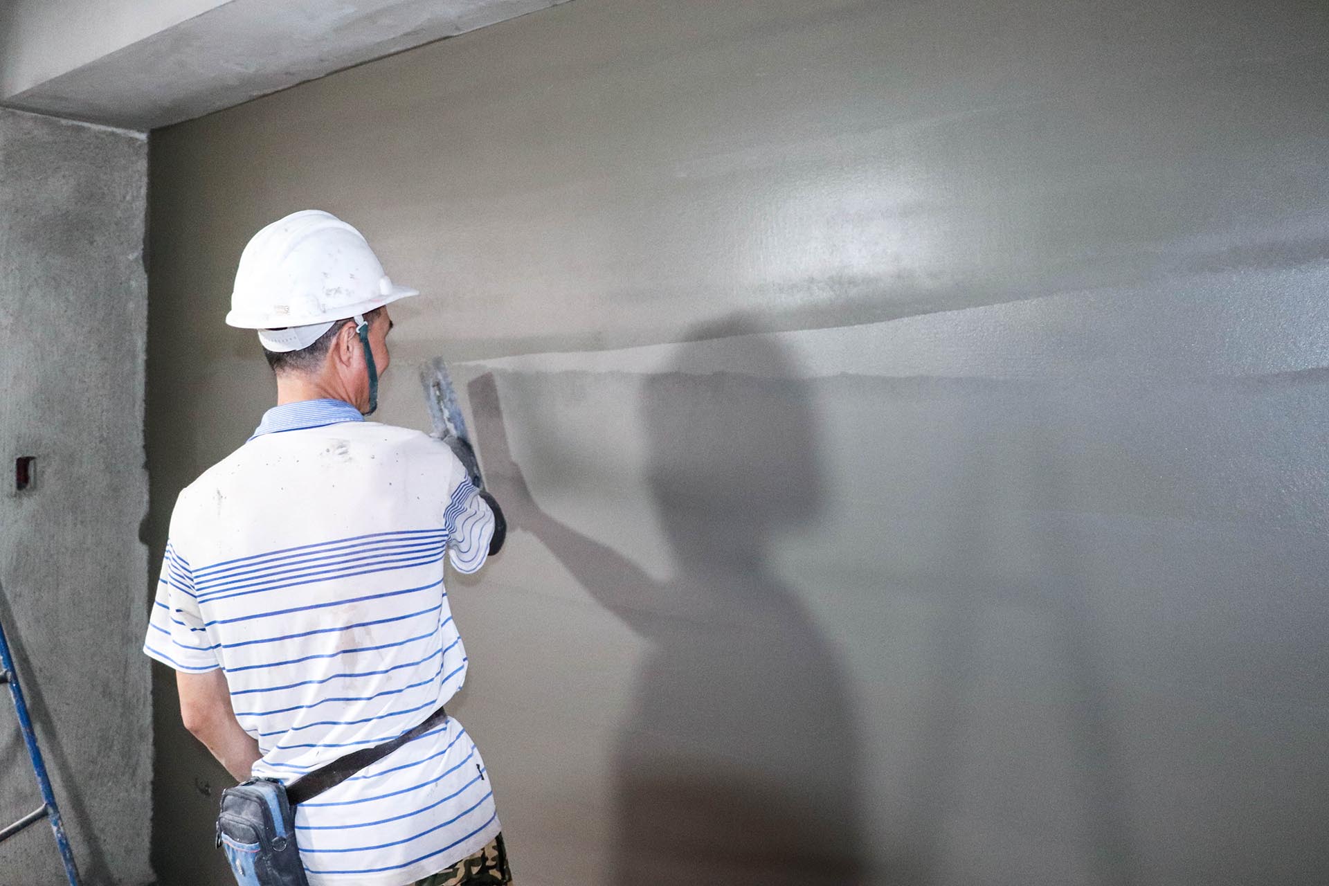 5.打底後的牆面靜置一段時間後,抹上細胚粉光層的水泥砂漿▼